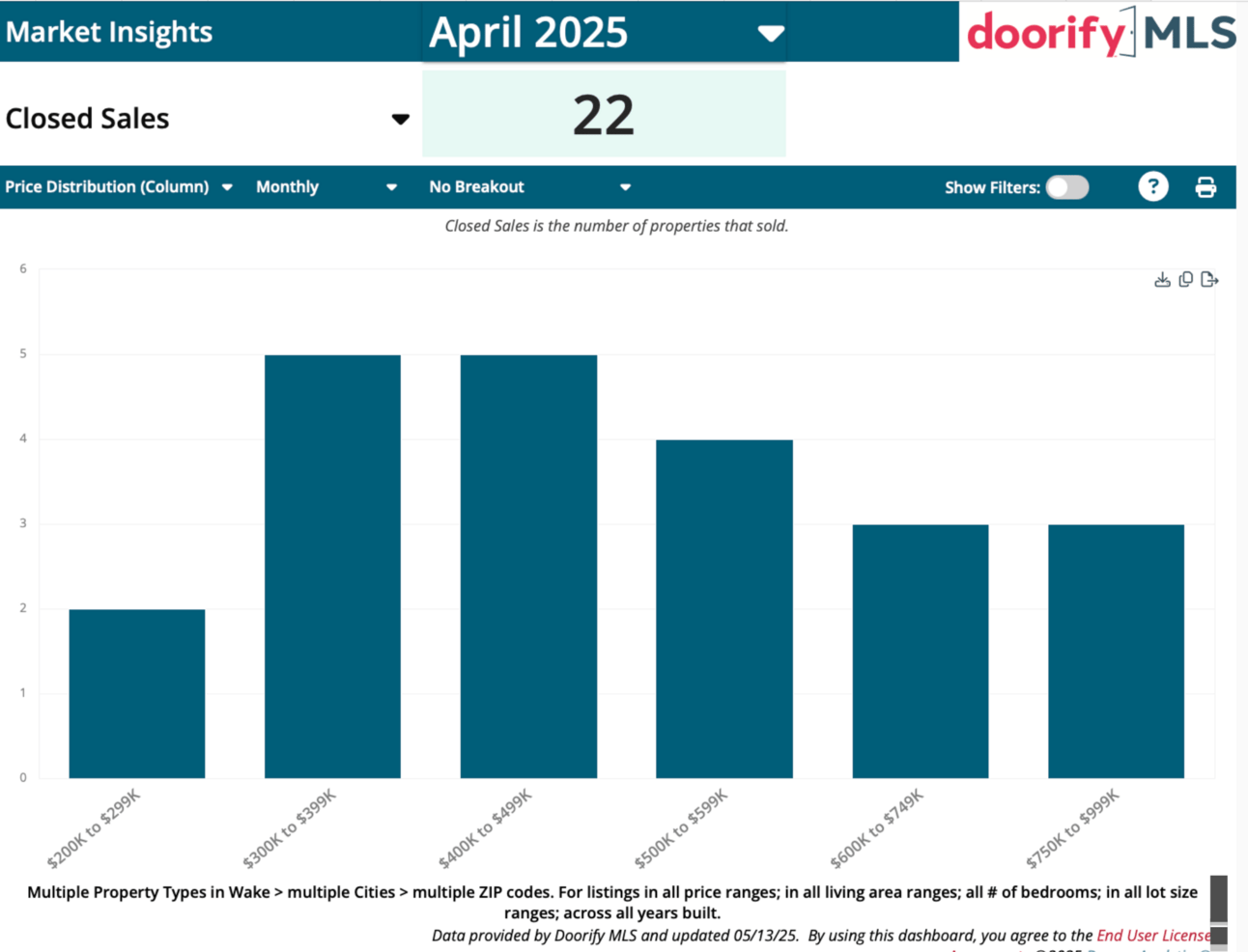 Wendell Falls Subdivision Closed Sales by Price Bracket April 2025